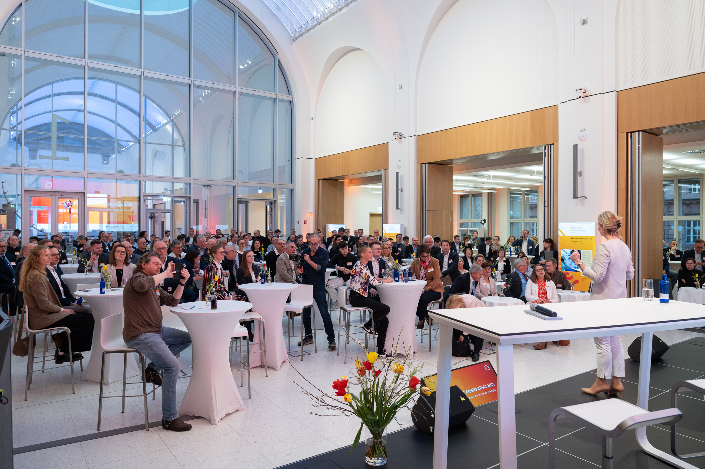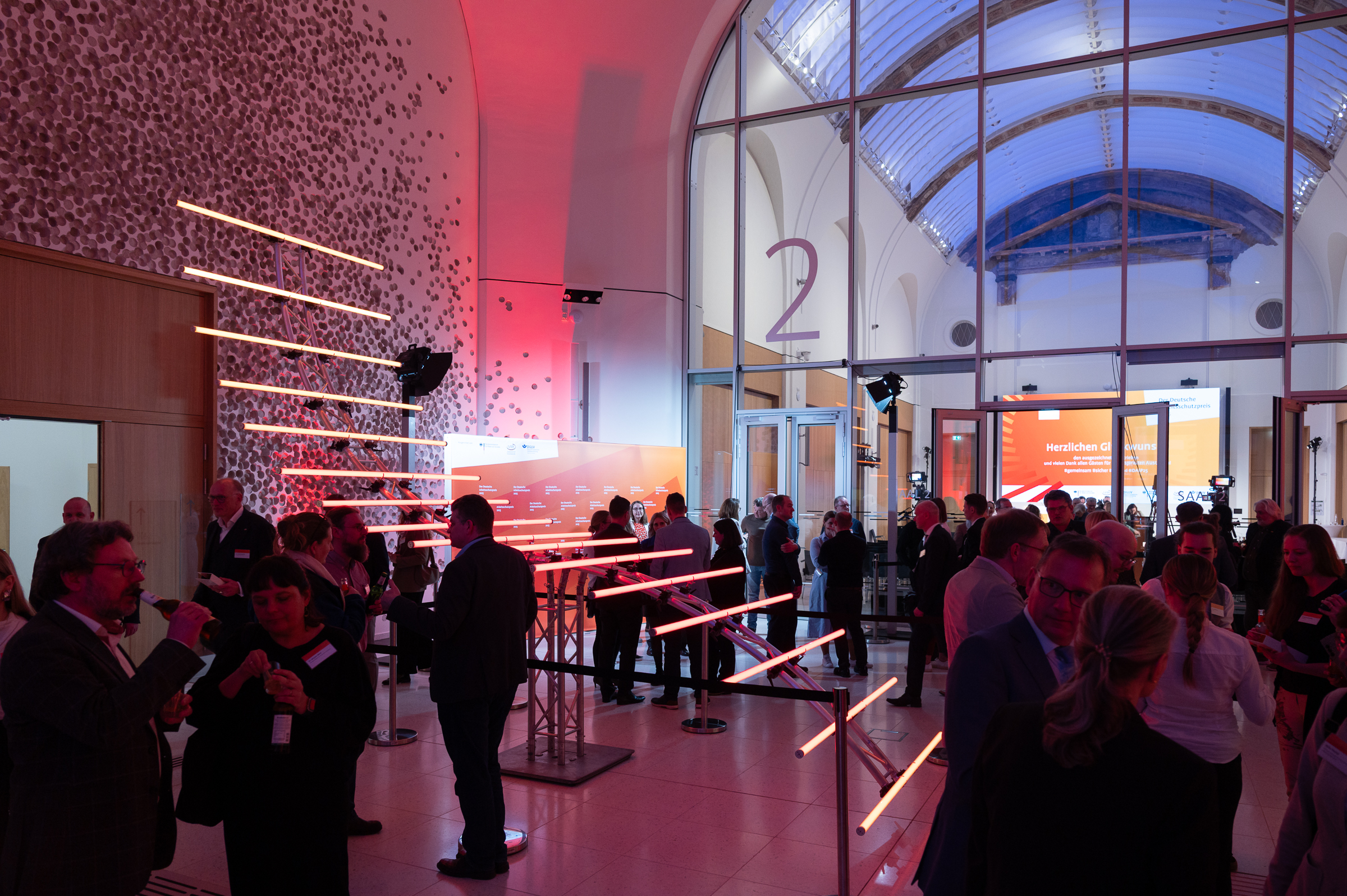 Get Together des Deutschen Arbeitsschutzpreises 2025 (Foto: DASP/J. Konrad Schmidt) Download Bild: Das gefüllte Foyer während des Get Togethers nach der Verleihung des Deutschen Arbeitsschutzpreises 2025 -