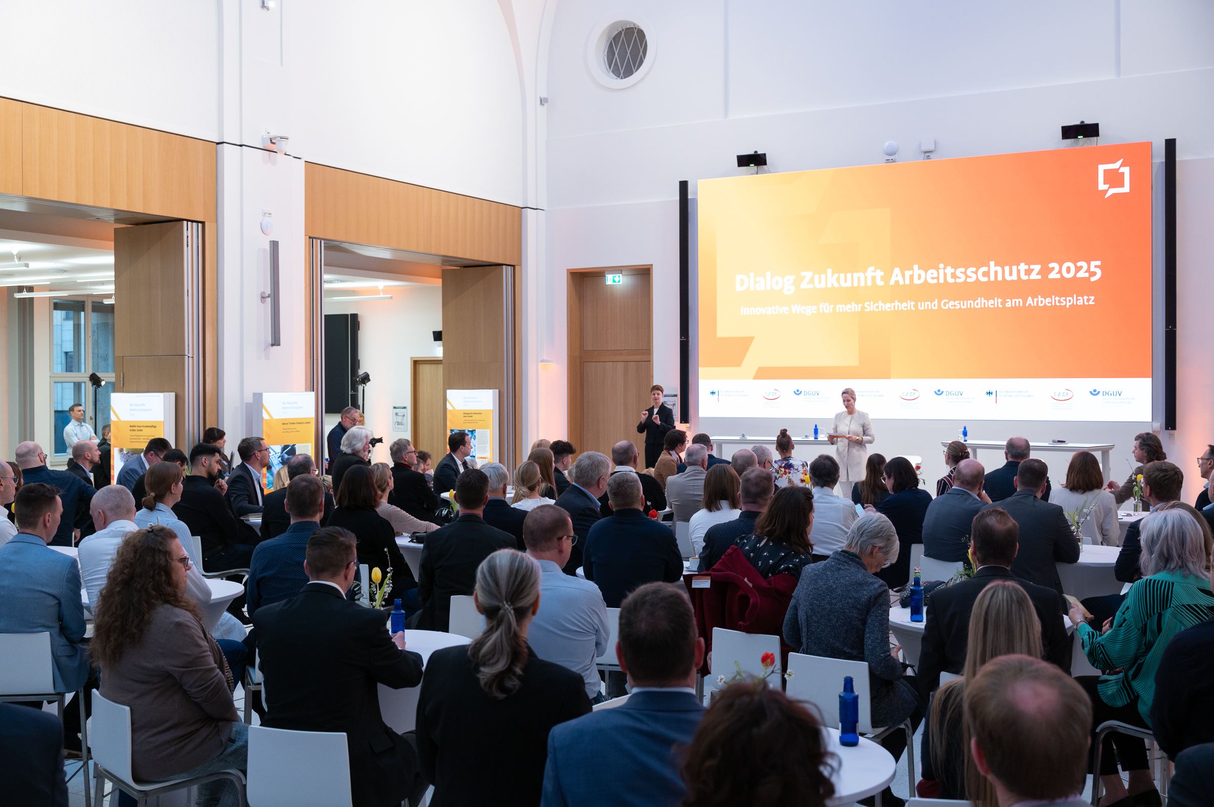 Veranstaltungssaal beim "Dialog Zukunft Arbeitsschutz 2025" (Foto: DASP/J. Konrad Schmidt) Download Bild: Publikum und Bühne während der Veranstaltung "Dialog Zukunft Arbeitsschutz 2025" -
